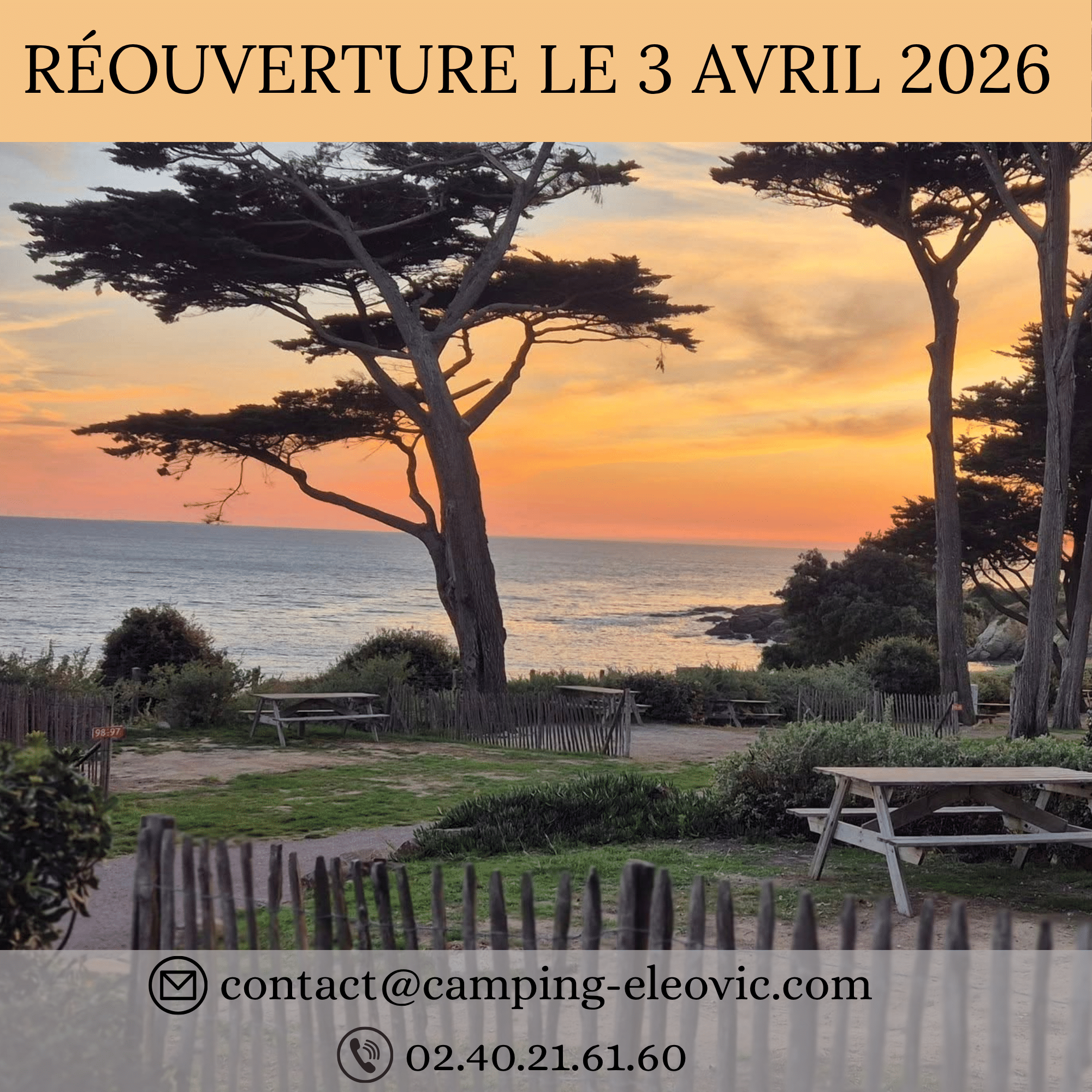 Situé en bord de mer entre la Bretagne Sud et la Vendée avec ce doux climat océanique, le camping Eléovic surplombe la baie de Bourgneuf et fait face à l’Ile de Noirmoutier.